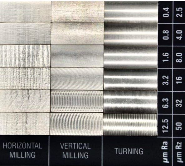 In der Zerspanung werden diese Messwerte häufig mit einer Oberflächengüteskala verknüpft (manchmal dargestellt als N-Zahlen, z. B. N1 = sehr fein, N12 = rau). Zum Beispiel: